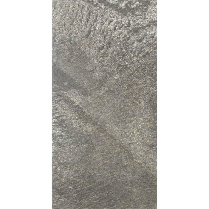 Fornir kamienny o szarej, lekko mieniącej się, surowej strukturze naturalnego kamienia.